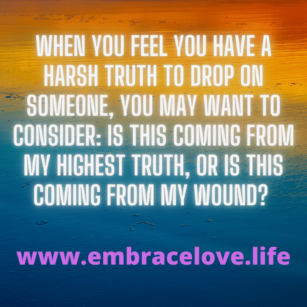 The next time you feel you have a harsh truth to drop on someone, you may want to consider: is this coming from my highest truth or is this coming from my wound?